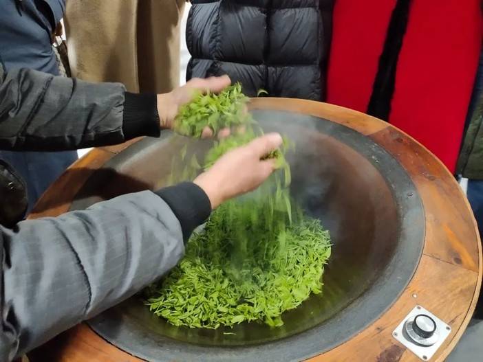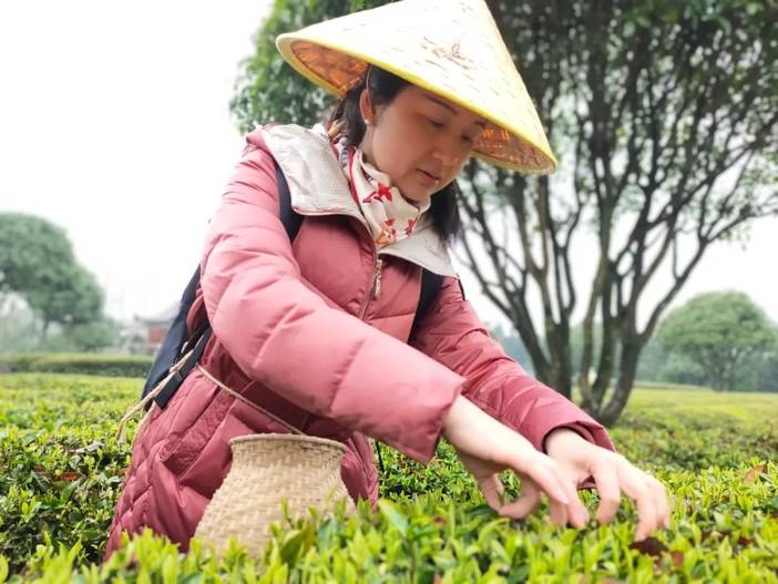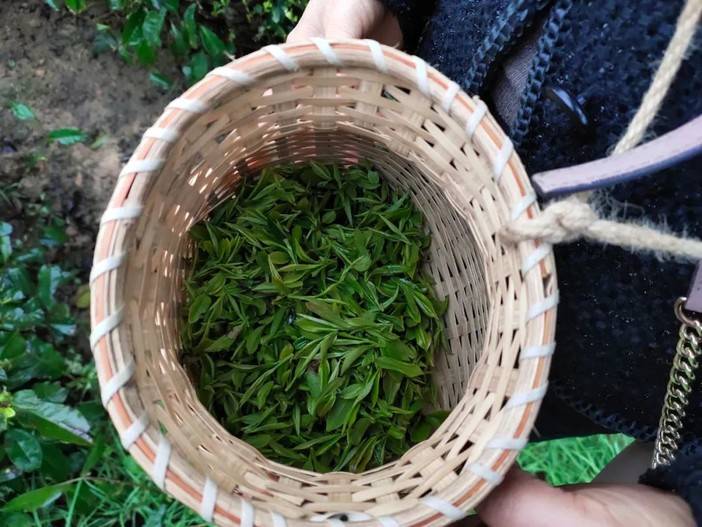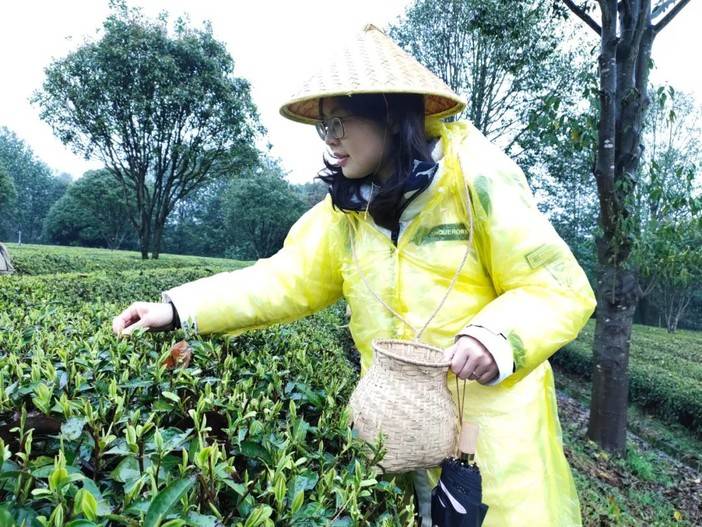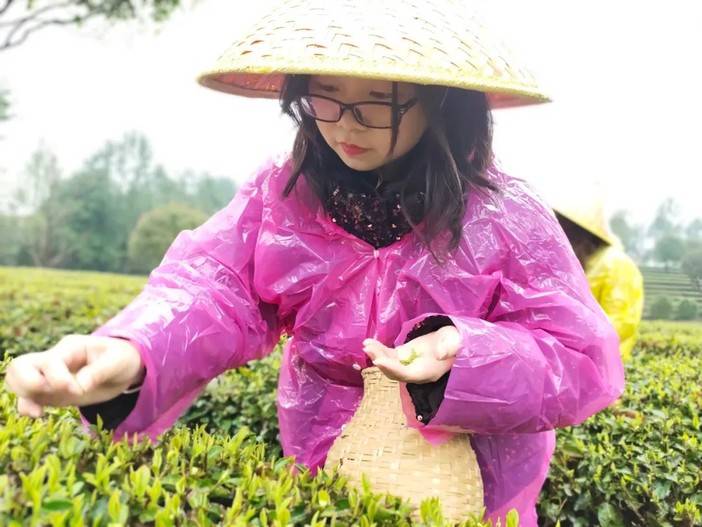 在这浓淡相宜的绿色海洋中,同学们化身为小茶农,侧着身子,一手拿篮,一手采摘。采茶对于每个人来说,既新鲜又有趣,他们按照所教的方法采摘一叶一芽或两叶一芽。采茶的手法由笨拙渐渐到熟练,小篮里的茶叶也慢慢地多了起来。在一排排的茶树当中,兴致勃勃地忙碌着,欢声笑语也沾染上了翠色,撒落在茶园里。