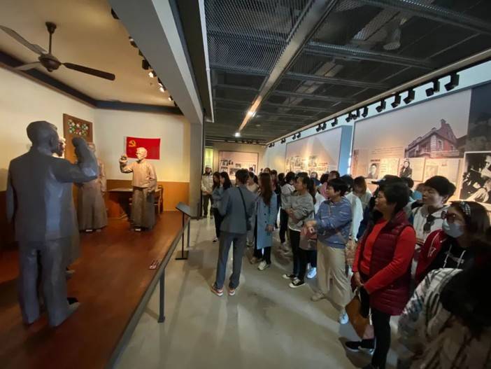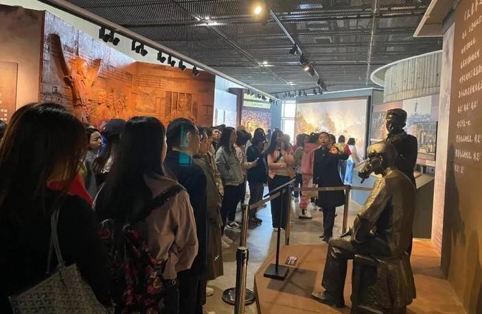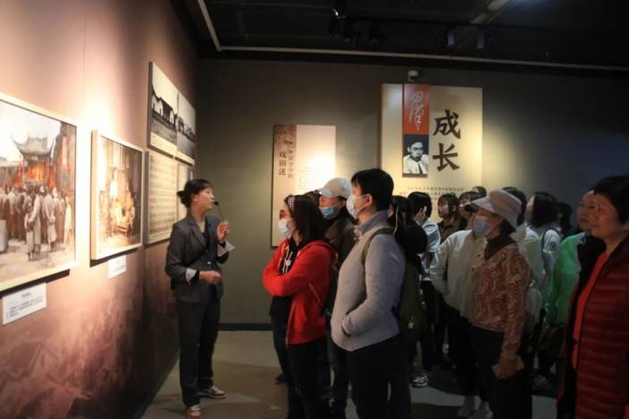 随后,听讲解员介绍田汉非凡的人生成长经历和光辉的革命历程,切身体会《国歌》所蕴涵的自强自省的自尊精神、顽强拼搏的献身精神、万众一心的团结精神和一往无前的进取精神。在《义勇军进行曲》展板前仔细观看珍贵的历史画卷,重温国歌精神,感受革命情怀。大家在展室里流连忘返,被田汉故里的好家风和田汉崇高的爱国主义精神、炽热的人民情怀、自觉的时代担当、坚定的艺术追求深深打动。