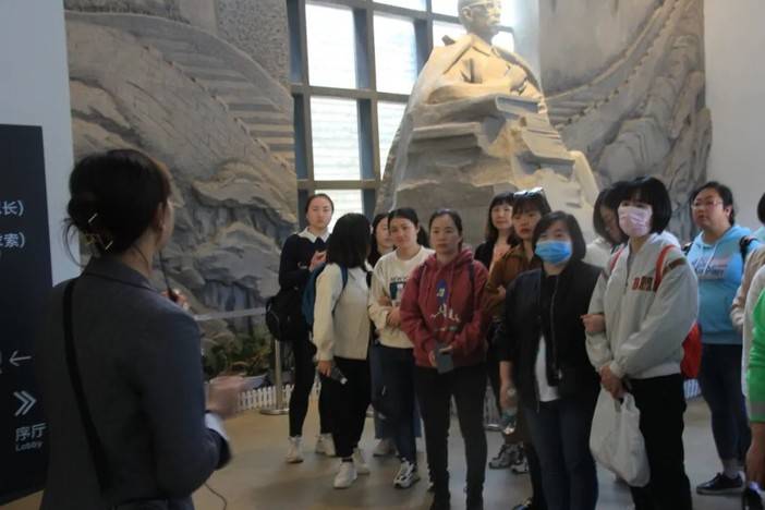 刚到田汉文化园,浓郁的文化气息扑面而来,伴着文化园中反复播放的红色歌曲,和讲解员的带领下,大家怀着怀着无比崇敬的心情,来到国旗广场合影留念。