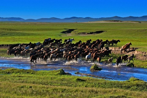 乌兰布统大草原位于克什克腾旗最南端, 距北京仅400多公里。与河北围场县的赛罕坝林场隔河相望,乌兰布统是清朝木兰围场的一部分,因康熙皇帝指挥清军大战噶尔丹而著称于世,更以其迷人的欧式草原风光,成为中外闻名的影视外景基地。这里的草原有四个显著特点: